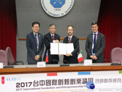 朝陽科大校長鄭道明(左二)和義大利大學代表簽約。林重鎣攝 為了協助新創團隊與國際接軌,朝陽科技大學13日特別由校長鄭道明與義大利Genova大學技轉中心Fabrizio Barberis代表簽署合作備忘錄,正式與歐洲國際創業育成結盟,並邀請義大利及法國新創團隊來台,希望未來能共同提升台灣的創新創業能量。 朝陽科大校長鄭道明表示,掌握創新與創業的契...... [閱讀更多]
