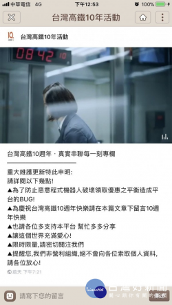 LINE瘋傳「台灣高鐵10年活動」贈禮劵? 台灣高鐵:假的!