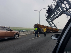 砂石車撞歪門架翻覆 中彰快速道路回堵2公里