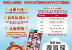 活動時間:109年11月13日~109年11月15日 09:00~17:00 活動地點:桃園市平鎮區蛋寶生技不老村/桃園市平鎮區北富里11鄰金陵路三段105號1樓 活動內容: 蛋來好運/持當日門票可參加扭蛋有獎徵答乙次 發票拼圖樂/憑現場購物發票乙張,完成租稅拼圖及獲得精美小禮物乙份 蛋載雲端/現場申辦手機條碼並消費儲存雲端發票,憑消費明細可兌換超商NT$100元...... [閱讀更多]