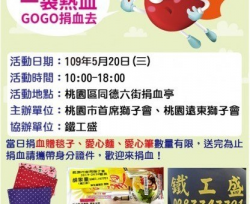 捐血日期:109年05月20日(星期三)➢上午10:00~下午18:00 捐血地點:桃園市桃園區同德六街捐血亭(桃園市桃園區同德六街) 捐血好禮: 捐血贈品/毯子、愛心麵、愛心筆 ※更多詳情請上活動官網與粉團:[新竹捐血中心粉絲團] ➠http:/...... [閱讀更多]