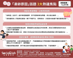 在現代晚婚晚育的趨勢下,「凍卵」成為女性生育的另一選擇,不只有許多知名藝人、網紅公開分享自己決定凍卵的原因和醫療過程,甚至有不少政治人物紛紛將凍卵補助納入政見,可見凍卵議題備受關注。 《Social Lab社群實驗室》本次透過《OpView社群口碑資料庫》追蹤三個內「凍卵原因」相關話題的網路聲量,帶您了解有關凍卵原因的討論聲量及熱議焦點。 凍卵保留「生育選擇權」 衝刺事業...... [閱讀更多]