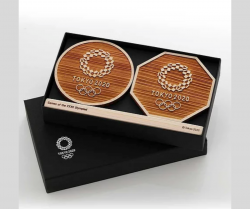 【東奧紀念品】東京奧運2020 BLUE MOON 柏樹杯墊 日本製造、日本直送