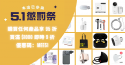 由即日起至 5 月 9 日期間,全港多間店舖一齊參與「51懲罰祭」,其中主打電子產品、生活百貨的網店 Aiyo0o.com 除了推出全店所有貨品適用的優惠碼 MEE51,讓你享 95 折之外,用同一個優惠碼購買滿 $1000,仲會即時有 9 折優惠,兼提供免費送貨服務! Aiyo0o.com 是一間主打電子產品及生活百貨的網店,當中包括智能手錶、智能家居、空氣淨化等不同...... [閱讀更多]