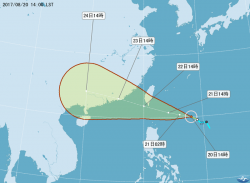 (圖片來源為中央氣象局) 根據最新的氣象資料顯示,原先位於菲律賓東方海面上的熱帶性低氣壓已於今天下午增強為今年第13號颱風「天鴿」。 目前輕度颱風「天鴿」的中心位置位於20.0度,東經 128.0 度,以每小時17公里速度,向西北西進行。颱風中心氣壓 998百帕,近中心最大風速每秒18公尺,瞬間之最大陣風每秒25公尺,七級風半徑 100 公里...... [閱讀更多]