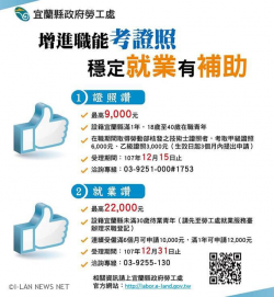 記者陳建輝/宜蘭報導 宜蘭縣政府貼心提供待業鄉親職前培訓,而開辦了「中餐料理暨中式米麵食證照輔導班」、「堆高機、固定式起重機暨挖掘機證照輔導班(原民、新住民及特殊境遇婦女優先)」、「烘焙暨飲料調製證照輔導班」、「美容暨美甲培訓班(原民、新住民及特殊境遇婦女優先)」及「時尚女裝設計證照輔導班」等5個失業者職業訓練班。 ...... [閱讀更多]