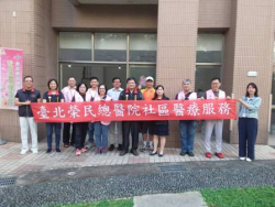 為落實醫學中心醫療深耕社區理念,建立與社區居民良好的互動關係,輔導會指導臺北市榮民服務處與臺北榮民總醫院醫療團隊於今(24)日上午8時30分,假臺北市萬華區崇仁社區活動中心(青年路152巷24號)辦理社區醫療服務。本次醫療巡迴服務,臺北榮民總醫院醫療團隊,以三高篩檢為重點,主題包括量血壓、體重、腰圍測量、尿液篩檢、營養及醫療諮詢等服務項目,以主動發現異常個案,建立檔案資料及追蹤治療,達到健康生活化...... [閱讀更多]