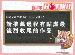 【萌咩HOT報】11月10日 網路的有趣HOT話題 2016-11-10 ▼萌咩HOT報!11/10▼ ||話題|| 請推薦過程有點虐最後甜收尾的作品 http://bit.ly/2fgt1H2 ━━━━━━━━━━━━━━━━━ 在這今天涼涼的天氣下,編編覺得都可以隨時進入睡眠狀態 ...... [閱讀更多]