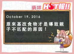 【萌咩HOT報】10月19日 網路的有趣HOT話題 2016-10-19 ▼萌咩HOT報!10/19▼ ||話題|| 原來基改食物才是導致親子不匹配的原因!http://bit.ly/2dmDdOg ━━━━━━━━━━━━━━━━━原來基改食物吃多了,孩子會別成別的物種!? 還是…...... [閱讀更多]