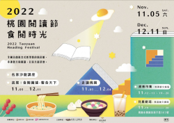 2022桃園閱讀節以「食閱時光」作為主題,從閱讀感知美食滋味,配合桃園市立圖書館新總館「生命樹」即將試營運,首度策劃全市性的節慶閱讀嘉年華,規劃於11月5日至12月11日辦理多元豐富的系列活動,包含名家沙龍講座、書香市集、走讀桃園、兒童劇場、主題書展,作為開館前的熱場活動,邀請到不同領域師資重磅登場,融合今年主題及打造閱讀嘉年華的理念,帶領民眾發現閱讀中的美好滋味。 ...... [閱讀更多]