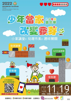 為迎接國際兒童人權日,桃園市社會局自即日起10月31日舉辦「少年當家,改變發芽!少年提案影片徵件活動」,邀請桃園市兒少夥伴透過影片發聲,集結讓桃園更美好的創意提案。徵件對象為桃園市12歲至18歲的少年,鼓勵少年透過手機等影音工具,拍攝1分鐘短影片,呈現對於桃園市現況政策、法規運行或各類行政事務運作等想法及建議策進方式,盡情展現多元的創作風格。 「少年當家,改變發芽!...... [閱讀更多]