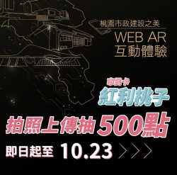 為展現桃園新地景之美與優質的公共建設,讓民眾透過科技互動方式欣賞建設成果,桃園市資訊科技局建構線上虛擬模型及拍照框互動體驗,不須安裝APP,透過智慧型手機,即可一秒與市政建設虛擬模型互動,參加體驗還可抽大獎,即日起至10月23日止,使用智慧型手機,瀏覽Web AR互動體驗網頁,任選一個拍照框自拍,公開上傳至個人臉書,並標註指定標籤「體驗桃園建設之美」,即可參加抽獎,有機會獲得價值1萬3...... [閱讀更多]