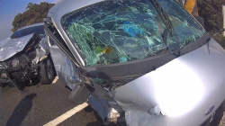 男自撞電線桿再撞對向汽車 擋風玻璃全裂