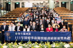 衛生福利部於今(11)日上午在金融研訓院菁業堂舉辦「111年醫療事故關懷服務績優表揚」頒獎典禮,公開表揚在醫療事故關懷服務推動、執行或醫療爭議協處上著有貢獻的醫療事故關懷服務績優人員及團隊,此次表揚「績優個人獎」14名、「績優調解委員獎」7名、「績優機構團體獎」11名及「公務績優獎」6名,感謝每位辛苦付出的醫療事故關懷服務人員,為促進醫病關係和諧「傳遞溫暖」、「傳達同理」與「傳承經驗」...... [閱讀更多]