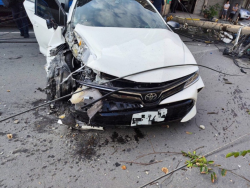 【有片】疑超速失控自撞!電線桿斷裂橫躺影響通行 1人OHCA送醫搶救