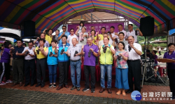 參與活動貴賓為活動宣傳行銷。〈記者吳素珍攝〉 南投縣葡萄節,水里鄉農會20日在水裡車埕遊客中心前廣場舉辦農特產品行銷活動,推廣具產銷履歷、有機友善耕種、三章一Q新鮮安全農產品,吸引許多遊客參觀選購。水里鄉黑紫玉葡萄口感香Q,果肉飽滿甜度高,深受消費者喜愛。 2019南投葡萄節水里鄉農特產創新行銷活動,來自各地的民眾熱情參與,非常熱鬧。農糧...... [閱讀更多]