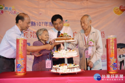 副縣長陳正昇〈右2〉與來自埔里的白金鑽婚代表楊清井、楊劉陸妹一起點喜燭、切蛋糕,分享幸福時刻。 南投縣府在九族文化村舉辨「107年度金婚、鑽石婚、白金鑽婚暨各類楷模表揚大會」,12日舉辦第2梯次,共有來自南投市、埔里鎮等6鄉鎮、779對結婚超過半世紀的夫妻參加,副縣長陳正昇與來自埔里的白金鑽婚代表楊清井、楊劉陸妹一起點喜燭、切蛋糕,分享幸福時刻...... [閱讀更多]