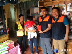 信義分局家防官史傳授會同警察局婦幼隊、警察志工等人匯集各項民生物資、現金、餐券等物品共同前往望美村關懷慰問。〈右1張組長右2史傳授左1伍曉英志工中隊長〉 信義鄉望美村一名單親母親涉嫌盜領存款案件,信義分局在偵辦本案時發現史女獨立撫養2歲幼兒,生活極為困苦,遂主動通報南投縣政府社會處;6月16日上午10點,信義分局家防官史傳授會同警察局婦幼隊、警察志...... [閱讀更多]