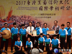 文化部文化資產局施國隆局長致贈感謝狀予八份姑媽宮。 文化部文化資產局訂21日在文化資產保存研究中心國際會議廳舉行「迎接千歲爺盛典的前奏-2017年臺灣王爺信仰文化國際學術研討會」開幕式,文化資產局施國隆局長親自主持。 開幕式同時也為10月21-22日間臺灣、日本、馬來西亞、新加坡及法國等國內、外學者齊聚一堂的論文發表揭開序幕。 迎賓入場時,特...... [閱讀更多]