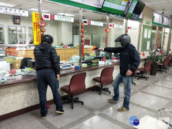 新竹郵局18日下午3時在東門郵局營業廳進行「防範犯罪環境評估檢測」,加強營業處所防犯強盜、搶奪、竊盜等安全防護措施,同時實施「員工自衛編組防搶演練」,提升員工安全維護及緊急應變能力。該項活動主要是農曆新年將屆,配合警方防範犯罪宣導。 防搶演練登場,兩名由警方裝扮的搶匪持槍至櫃台高喊搶劫,並開槍喝令櫃員交出現金,得手後逃離。轄區警方據報後,根據現場...... [閱讀更多]