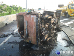 小客貨車後輪鎖死翻覆起火 駕駛爬出車外死裡逃生