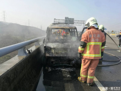 中二高發生火燒車意外 駕駛見「火球」棄車逃生 國道3號中二高15日上午發生火燒車意外!1輛由張姓男子所駕駛的廂型車,15日上午10時許,行經國道3號北上185公里彰化和美路段時,廂型車車頭突然竄出濃煙並起火燃燒,張姓駕駛見「火球」逼近,趕緊將車開往路肩、棄車逃生,縣消防第一大隊緊急滅火,整輛車一下子燃成烈焰,燒成一團廢鐵。 國道員警調查,張姓男子...... [閱讀更多]