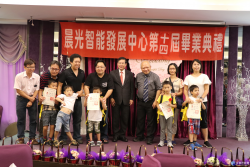 『星晨微亮,夢想啟飛』 晨光畢典 溫情滿溢 晨光第十四屆畢業典禮『星晨微亮,夢想啟飛』在8月25日熱鬧登場,今年共有5位孩子即將升上國小成為小一新鮮人,另外還有7位孩子因為早期療育的成效顯著,提早回歸一般幼兒園,有別於以往的節目安排,今年特別為所服務的慢飛天使家庭安排小型溫馨餐會,除了慰勞一路辛苦陪伴孩子長大的家長們,更期待透過這樣一個場合凝聚家庭間...... [閱讀更多]