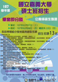 嘉大師培公費生招考獲迴響 107學年度即日起開放網路報名