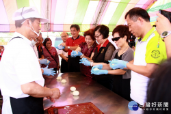 丁師父指導來賓試做壽桃。(記者扶小萍攝) 農曆3月23日是媽祖聖誕千秋,南投慈善宮與南投地檢署特舉辦「媽祖心社區情」社區傳愛關懷活動,邀請丁景雲師父教大家做壽桃吃平安!檢察長楊秀蘭強調匯聚關懷及信仰的力量,將對媽祖的信仰轉化為幸福的明燈,共同關懷弱勢與犯罪被害人、社會勞動人等。活動並送出600份豬腳麵線壽桃到社區弱勢戶、長輩們手中。 南投地檢署長...... [閱讀更多]