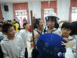 女同學首度體驗當警察的滋味。 南投縣警察局中興分局為提前使轄內小朋友度過有意義的兒童節,從小建立良好的婦幼、交通安全暨預防犯罪、廉政等相關知識,特於分局3樓禮堂,邀請光華國小4年級師生舉辦「小警察體驗營」活動,透過有獎徵答及豐富的婦幼、交通安全演講,讓學童學習守法觀念。 這項校外教學活動,中興分局安排有警械、裝備展示體驗,讓同學們體驗持槍、試穿防...... [閱讀更多]
