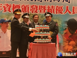 消防局為服務40年以上的兩位義消送上蛋糕。(記者扶小萍攝) 南投縣消防局12日於中興新村省政資料館隆重舉行「107年民力團體年資標頒發暨績優人員表揚」典禮,縣長林明溱出席頒獎表揚義消副總隊長黃志學、幹事許民衛等332位民力團體年資標及績優人員。林明溱說,民力團體分佈各鄉鎮克盡職責,堅守崗位,協助災害防救及宣導防火觀念,強化民眾防災意識,降低災難...... [閱讀更多]