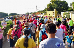 南投縣府與慈善宮舉辦文化節健行陣容空前壯觀。(記者扶小萍攝) 2018慈善宮文化節神保平安幸福南投旺旺來活動,30日一早3千餘熱愛健行的民眾齊聚在慈善宮廟前廣場,響應慈善宮環保愛地球的推動,縣長林明溱、慈善宮主委李轂摩、副主委林源朗以別出心裁兼具環保的踩氣球方式鳴砲起跑,參與民眾扶老攜幼魚貫走向易經大學,隊伍浩浩蕩蕩空前壯觀,為今年文化節系列活...... [閱讀更多]