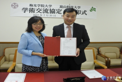 崑山科大李天祥副校長(右)與梅光學院大學校長樋口紀子(左)簽訂合作交流備忘錄。 為強化國際合作,崑山科技大學副校長李天祥等一行人前往日本訪問,與多所大學締結姊妹校及簽署合作備忘錄。李天祥副校長表示,除加強彼此合作交流外,也落實AU+亞洲大學聯盟的精神。 崑山科技大學訪日一行人,包括副校長李天祥、旅遊文化發展系老師張婷婷、國際暨兩岸交流處經理吳宜芳...... [閱讀更多]