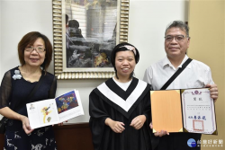 長榮大學2017年畢業典禮有傳統洗腳禮的師長幫學生洗腳,期許畢業生有謙卑服事、虛心學習的精神。畢典中特別頒發學行典範獎給美術系宋安莛,表揚她勇於克服腦性麻痺障礙,通過身體缺陷考驗,每一步都比別人走得艱辛,仍堅持朝繪畫的夢想邁進,繼續攻讀長榮大學美術系研究所,用藝術創造自我價值,彰顯生命光彩。 宋安莛出生時因缺氧導致惱性痳痺,成了身心障礙兒。小學四年級參加...... [閱讀更多]
