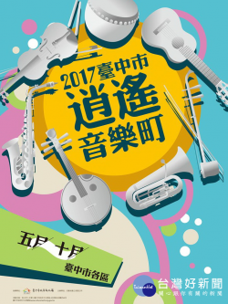 2017台中市逍遙音樂町 「2017台中市逍遙音樂町」正在各區陸續熱鬧登場,為迎接2018台中世界花卉博覽會,特別融入花博元素,本周末在北區、東區、大雅、潭子、東勢、梧棲將分別邀請樂手們捎來與花有關的美好樂音,其中超過7成演出團隊為台中在地團隊,充分展現在地化的藝文能量。 逍遙音樂町由台中市政府文化局委託台中市各區公所主辦,今年活動自即日起至10...... [閱讀更多]