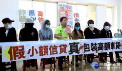 詐騙新手法? 7甘苦人疑遭坑殺還背車貸 台中有資金需求的多位民眾因無法取得銀行貸款,轉向「板信立銀」求助,對方以「培養信用」為由,透過車貸取得二手車擔保,還聲稱可協助轉為租賃車,保證每月回收租金補貼車貸。被害民眾最後資金沒拿到,還背上分期還款債務,認為遭民間業者坑殺,怒向台中市議員謝志忠陳情。 謝志忠議員表示,公司透過傳單、臉書宣傳等,告...... [閱讀更多]