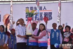 支持者送上好彩頭,希望韓國瑜、張嘉郡雙雙當選。 雲林縣第一選區(海線)立法委員候選人張嘉郡今天下午在北港鎮民眾服務社旁廣場,舉辦「北港鎮競選聯合服務處暨後援會成立大會」,張嘉郡懇託鄉親支持再進國會,爭取實現「活力、創意、新北港」,並全力爭取闢設台78甲快速道路開通,交通便利,並規劃宗教博物館,促進北港宗教觀光旅遊,現場鄉親展現高人氣支持,一旁還...... [閱讀更多]