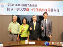 興大發表新登革熱疫苗。林重鎣攝 台美跨國團隊研發新一代登革熱疫苗,成果10月登上國際重要期刊 「eLIFE」。 由中興大學獸醫學院微生物暨公共衛生學研究所教授趙黛瑜與美國疾 病管制中心教授張光正、 成功大學老師吳尚蓉及中研院生醫所研究員林宜玲、 細個所研究員吳漢忠組成的團隊,強化現有疫苗之不足, 所開發之新一代疫苗,經老鼠實驗證明, 對於四種不...... [閱讀更多]