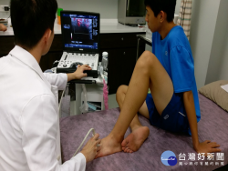長安醫院替選手醫治。林重鎣攝 15歲國二生、跆拳道選手謝同學, 5月初在校比賽練習時左腳不慎踢到受傷,造成腳趾瘀青無法彎曲, 就連走路都疼痛不已。 忍痛一週後才在媽媽陪同下前來長安醫院復健科就診, 透過高階骨骼肌肉超音波檢查發現左腳第2趾蹠骨受傷, 且有嚴重急性發炎反應,王偉全醫師建議施以「神經增生療法」 精準注射低濃度葡萄糖於患部,經二次治療有效緩...... [閱讀更多]