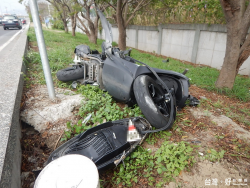 騎士的機車被撞爛。林重鎣攝 又是酒駕闖大禍!太平區47歲程姓男子上午至友人家小聚飲酒,近中午許,程姓男子開著自小客車載著兒子再至太平友人家,行經太堤東路與興隆路口時,因未注意車前狀況,撞上去買飲料的20歲陳姓男子,令人驚訝的事,程姓男子竟疑似叫20歲兒子頂罪,所幸處理的太平警交通分隊蔣姓員警發覺事有蹊翹,調閱監視器戳破謊言,還發現酒駕的程姓男子還拿走...... [閱讀更多]