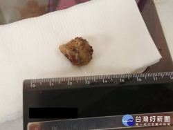 二公分扁桃腺結石。林重鎣攝 57歲何先生近期感到喉嚨卡卡、口腔有異味, 赴醫檢查發現口腔有一顆2公分不明球狀物, 正當醫師準備進一步確認時,球狀物卻掉入氣管內, 造成呼吸開始窘迫,幸好醫師立即施以哈姆立克急救法, 協助將球狀物成功吐出來,這才確診為罕見「隕石級」扁桃腺結石, 嚇得患者直呼:「以後要認真清潔口腔了!」 亞洲大學附屬醫院耳鼻...... [閱讀更多]