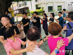 南市社會局青年志工到據點與長輩互動 傳球、搭橋趣味多