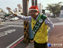 祝福市民聖誕快樂 顏純左頭戴聖誕帽路口拜票