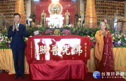 清泉寺致力社會公益 林智堅贈匾「佛光普照」