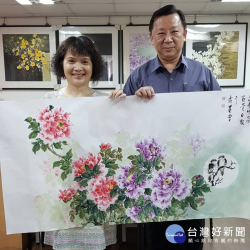 大師揮毫贈畫謝中壢警 緣起富貴長春到白頭