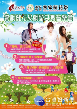 楊梅區公所舉辦「古道健行賞桐花」,下午「懷舊經典演唱會」,晚上「共下來聆聽桐螢共舞音樂會」。 為迎接桃園市楊梅區一年一度客家桐花祭,楊梅區公所5月6日於東森山林渡假酒店附設大停車場早上舉辦「古道健行賞桐花」,下午「懷舊經典演唱會」,晚上「共下來聆聽桐螢共舞音樂會」,特別提醒參加上午健行活動的民眾,因老莊路路幅不大,停車空間有限,當天參與人潮眾多,請大...... [閱讀更多]