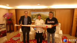 Jim Small(左)代表MLB贈超級球棒予鄭文燦市長(中),與寶悍運動平台張運智總經理(右)合影。 MLB美國職棒大聯盟國際副總裁Jim Small23日拜會桃園市鄭文燦市長洽談有關「2017MLB台灣全明星賽」。「MLB全明星台灣大賽」曾於2011年在新北市、台中市及高雄市舉辦,由寶悍運動平台與遠東商業銀行力邀MLB明星隊來台,且由中華棒協以...... [閱讀更多]