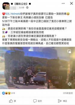 桃園市一名22歲陳姓男子本(5)月28日下午15時許騎機車於萬壽路一段、中正路口停等紅燈時,差點被從右後方鬼切的白色自小客車擦撞,陳男因受到驚嚇,便問對方「路是你家開的嗎?」沒想到駕駛竟衝下車,出拳毆打騎士,打了約13拳才停下,過程全被後方車輛的行車紀錄器拍了下來。對此,龜山警分局回應,該名騎士頸部有擦挫傷,已至迴龍派出所要對白車駕駛提出傷害告訴。 駕駛下車朝騎士揮...... [閱讀更多]