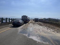 桃園市平鎮區台66快速公路24日10時25分左右,黃姓男子(52歲)駕駛砂石車行經桃園市平鎮區台66快速公路東向22.8公里處,疑似因緊急剎車,車斗載運含水砂石瞬間前湧,導致砂石散落,佔用外車道及路肩,嚴重影響交通順暢,所幸並未造成人員傷亡。 24日52歲黃姓男子駕駛砂石車行經平鎮區台66快速公路東向22.8公里處,車輛裝載的砂石散落,佔用外車道及路肩。圖:讀者提供...... [閱讀更多]