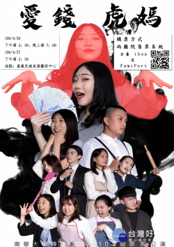 「愛錢虎媽」首場大獲好評 ! 諷刺社會被錢財控制 南華大學傳播系學生劇團《戲生》將於4月26日、27日登上民雄表演藝術中心展開連續三場畢業公演。首次校園場就大獲好評,因此備受關注,目前三場公演已在兩廳院售票系統上線,喜愛舞台劇的朋友及各界人士踴躍並趁早購票以免向隅。 舞台劇改編自十七世紀名作莫里哀《守財奴》,結合導演陳映容自身經歷,透過幽...... [閱讀更多]